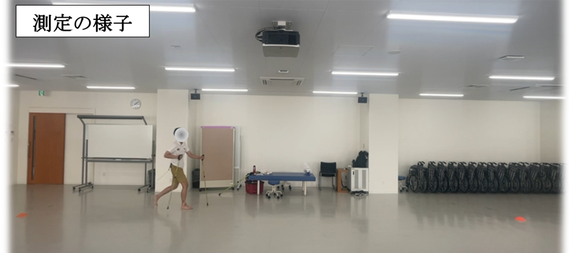 そこで私は、運動学習の理論である注意焦点(外的焦点/内的焦点)に着目し、指導の違いがNWの歩行にどのような影響を与えるのかを検証しました。NWはポールの使い方が歩き方に大きく影響するスポーツで、「ポールをどこに突くか」「どのように体重を乗せるか」といった指導が重要になります。研究では、男子大学生21名を外的指導群と内的指導群に分け、指導前後で10mのNWを実施し、歩行パフォーマンス(歩行時間・速度・歩数・歩幅)、体幹の動きの大きさを示す左右・前後・上下方向の加速度Root Mean Square値(RMS値)、指示の理解度を測定しました。