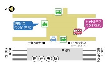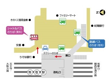 (泉佐野駅前 8:40発、8:50発(熊取駅前 8:55発、9:05発)の南海バスも無料でご乗車いただけます。)