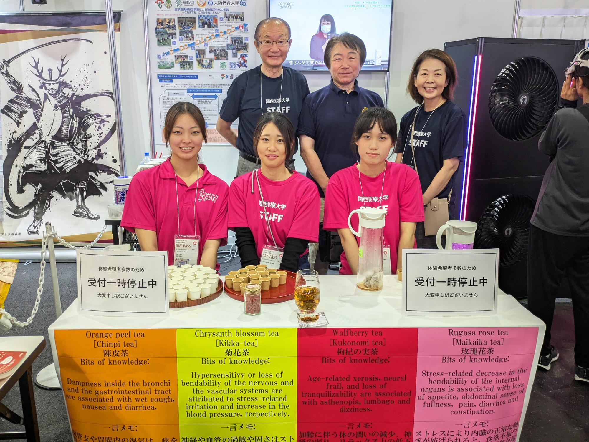 本学は、その取組として9月14日(日)に『東洋医学の魅力が発見できる“薬膳茶”』を出展し、来場者の方々に試飲を体験していただきました。多くの方が足を運んでくださり、薬膳茶に興味を持っていただけたようです。