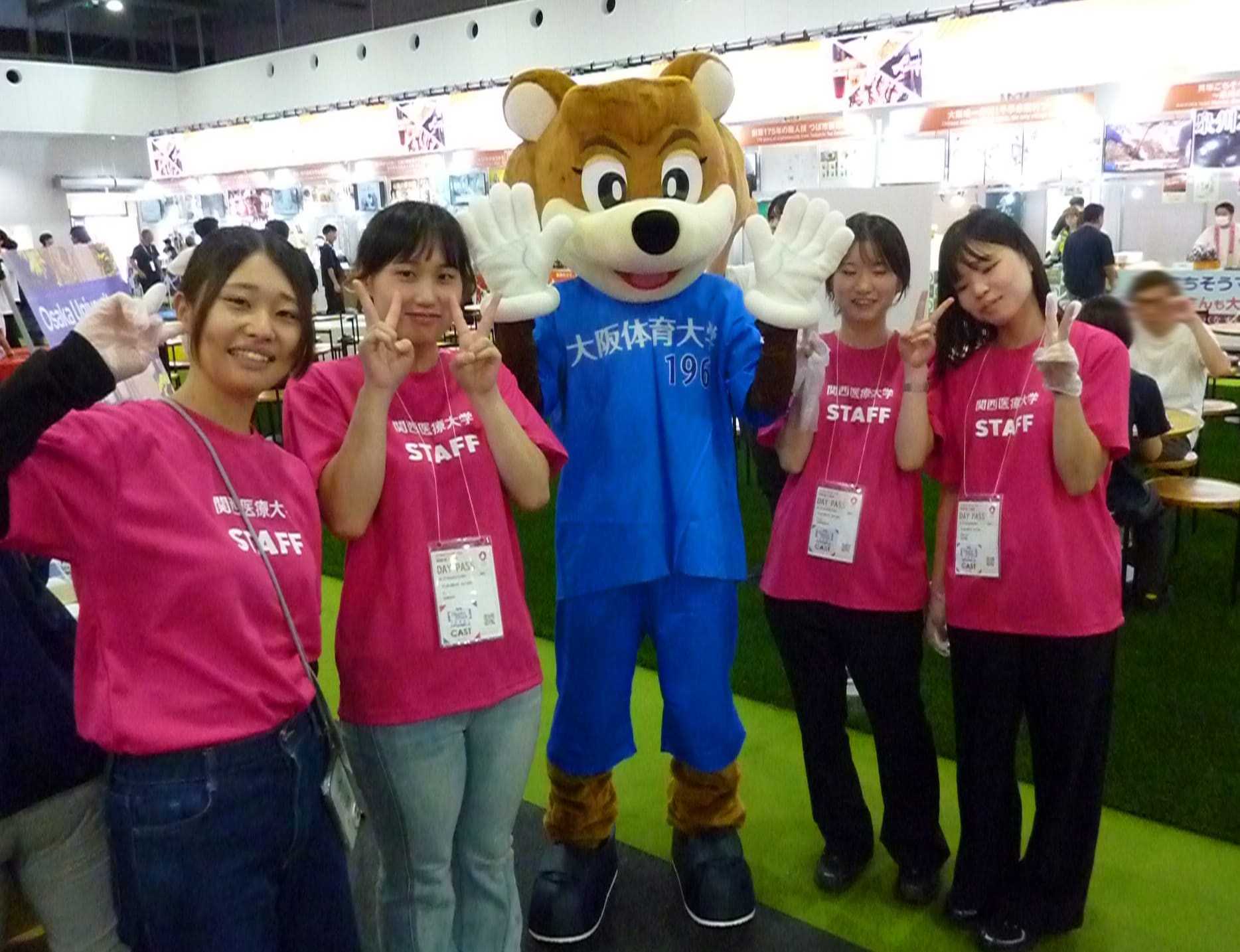 ↑ 大阪体育大学のマスコットキャラクター BOUHSEAR (ボーシャー)くんと一緒に。