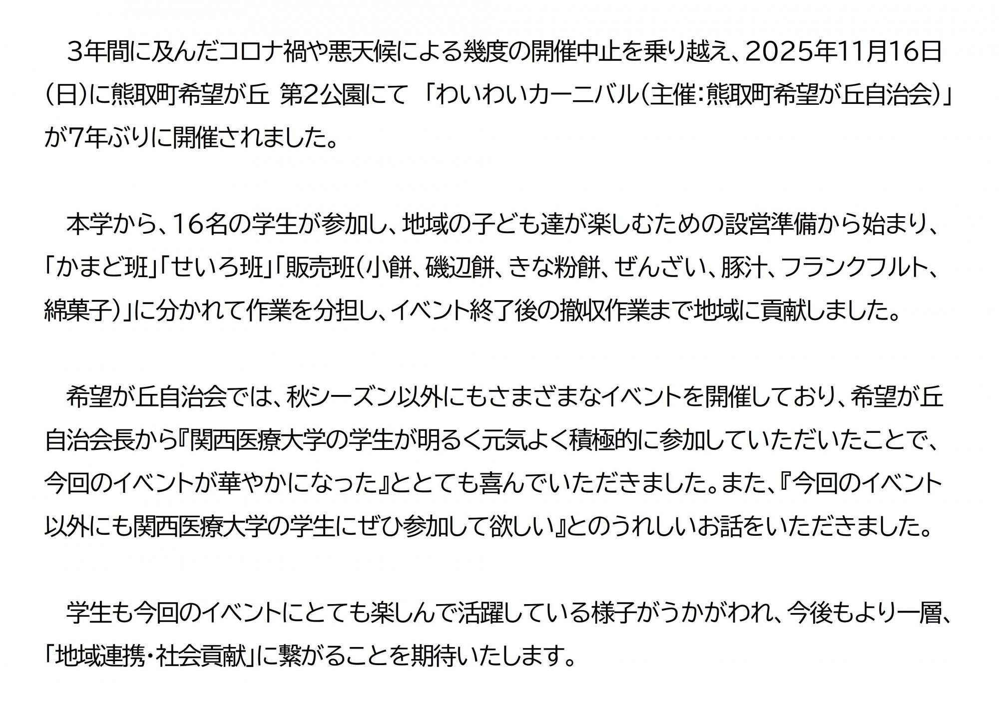 「わいわいカーニバル」に本学学生がボランティアで参加しました!